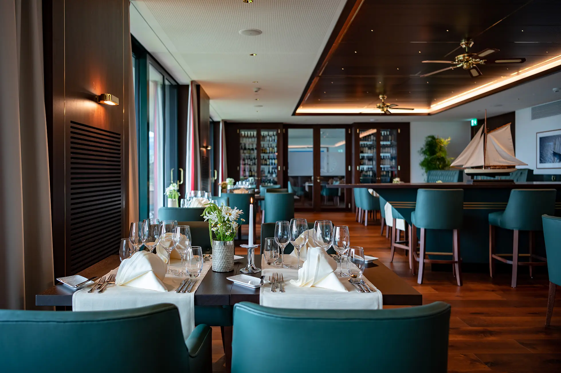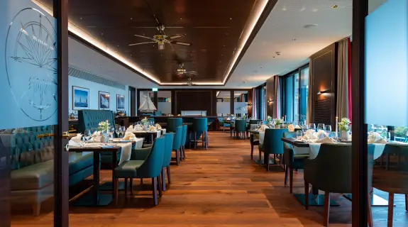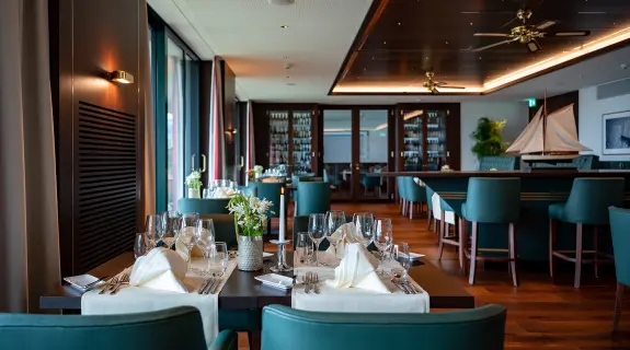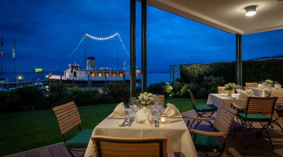 Der grosszügige Raum in warmen Tönen schafft eine einladende Atmosphäre, während der Blick auf den Hafen, die hoteleigene Motoryacht und den Bodensee begeistert. Im Sommer dinieren die Gäste auf der vorgelagerten Terrasse. Das «Wave» ist der perfekte Ort für kulinarische Genüsse in einer traumhaften Umgebung.